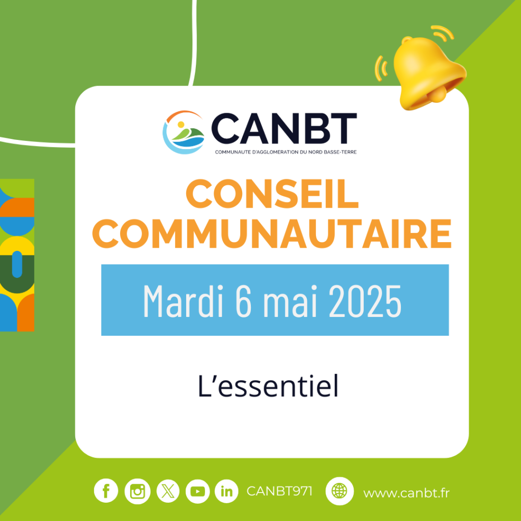 Le Conseil Communautaire de la CANBT s’est réuni le mardi 6 mai 2025 à l’Hôtel de Ville de Deshaies pour voter les 27 points inscrits à l’ordre du jour. Les délibérations adoptées concernaient notamment les finances, l’insertion, la gestion des déchets, la transition écologique et le développement économique.