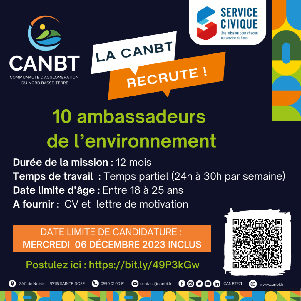 📌 La Communauté d’Agglomération du Nord Basse-Terre recrute 10 jeunes en service civique, sans condition de diplôme ou d’expérience.