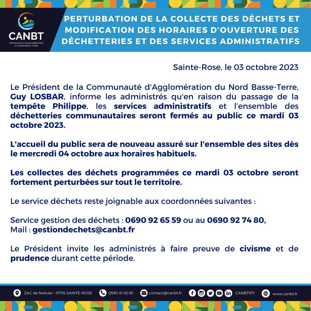 Service gestion des déchets : 0690 92 65 59 ou au 0690 92 74 80,