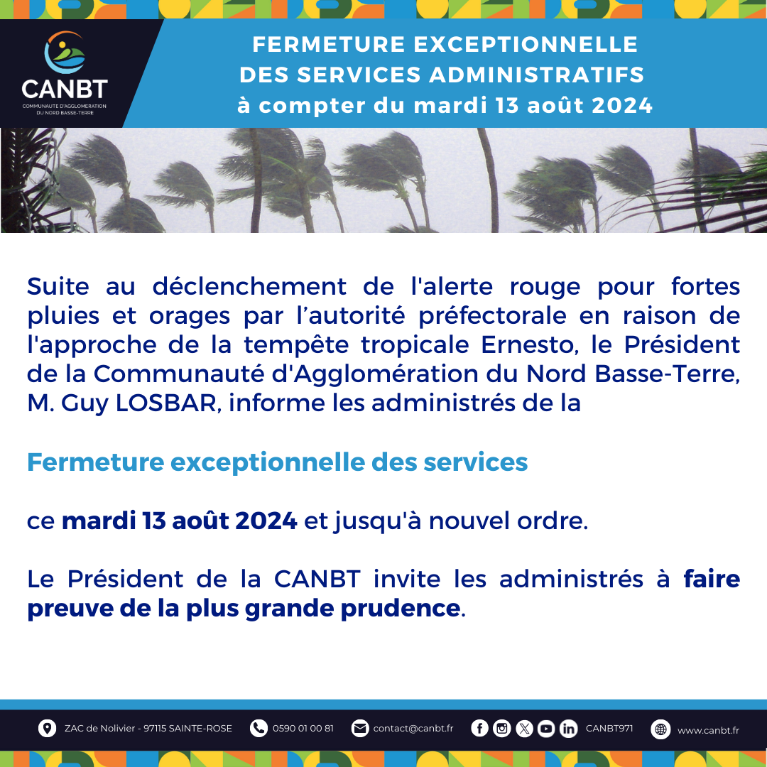 Le Président de la CANBT invite les administrés à faire preuve de la plus grande prudence.