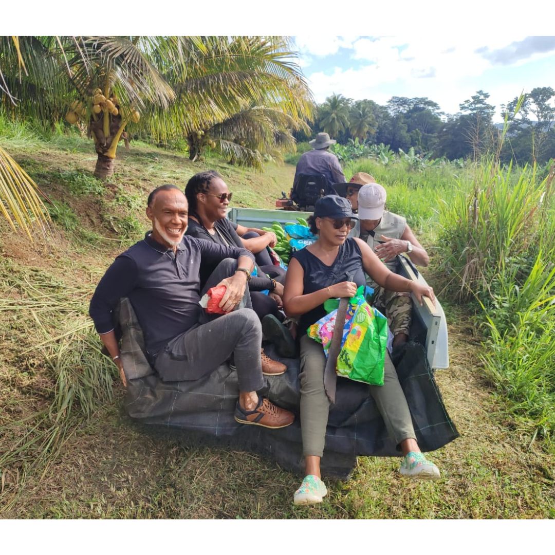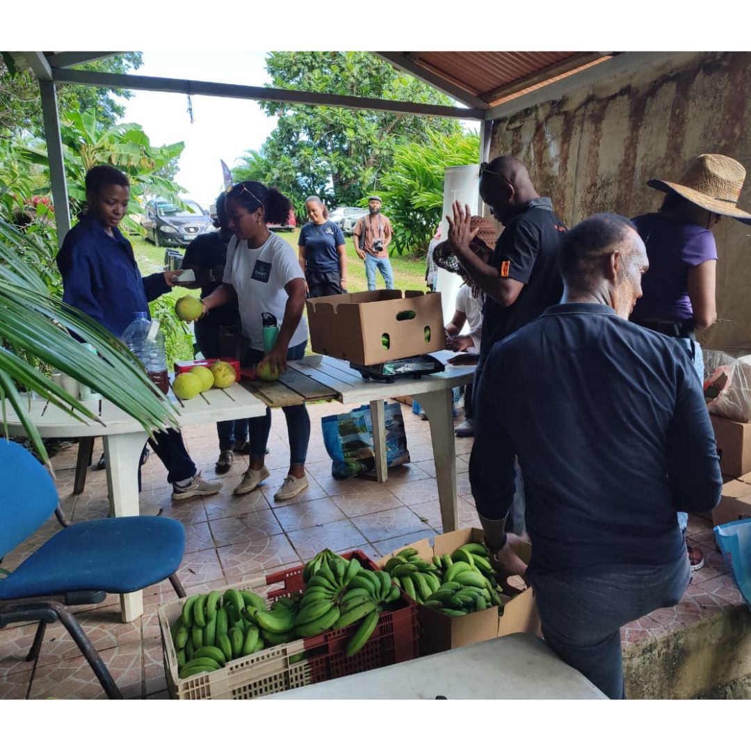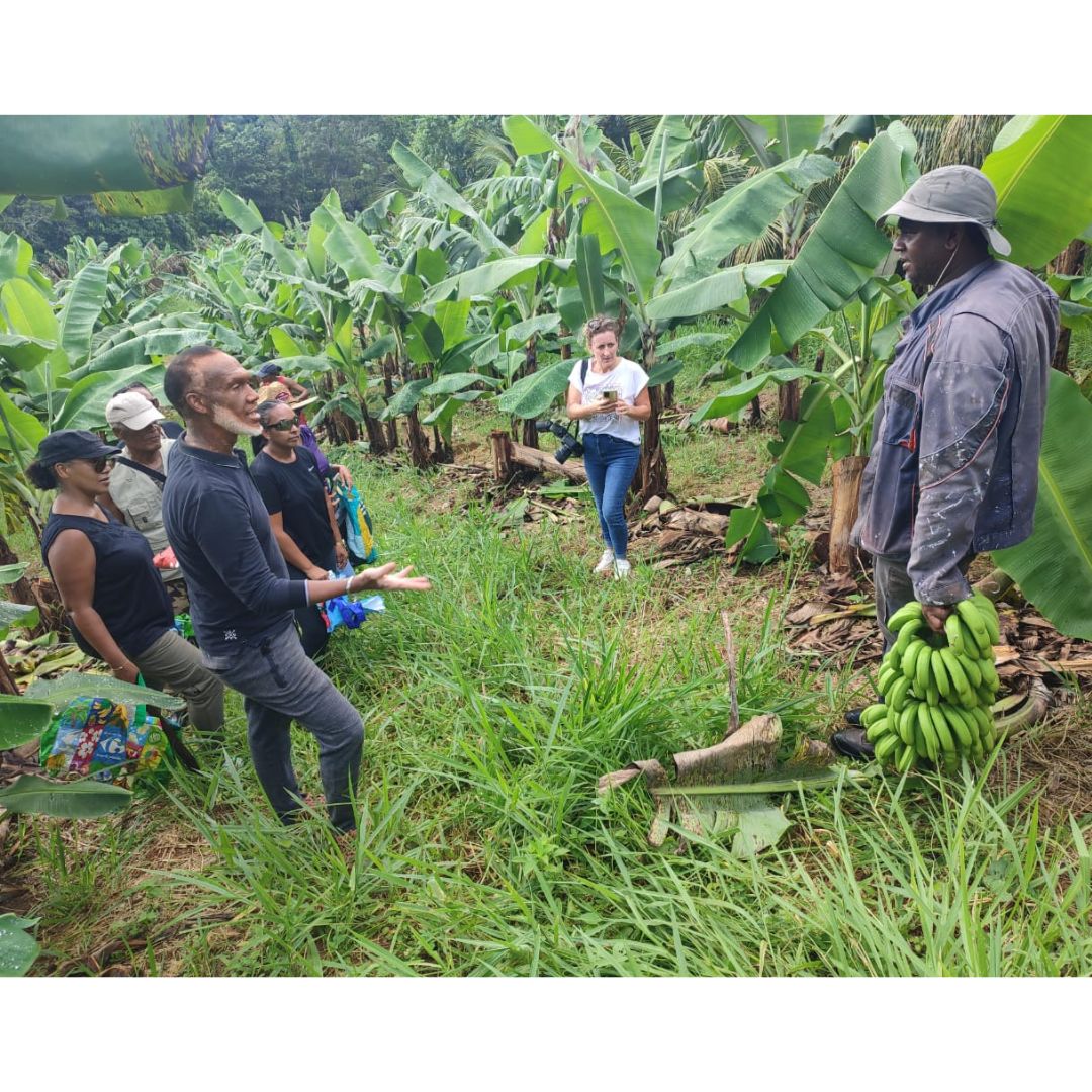 Au cours de la matinée, les participants ont pu découvrir au cœur de l’exploitation agricole de M. LATCHMAN, les opérations nécessaires à la récolte de la banane avant de pouvoir s’approvisionner en fruits et légumes frais.
