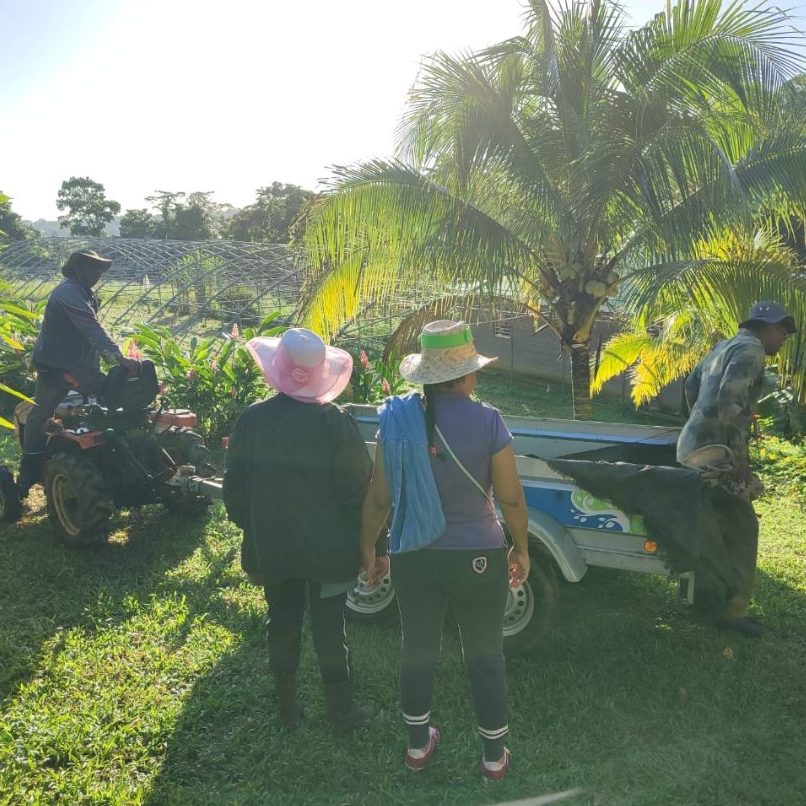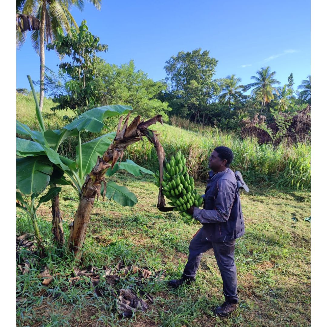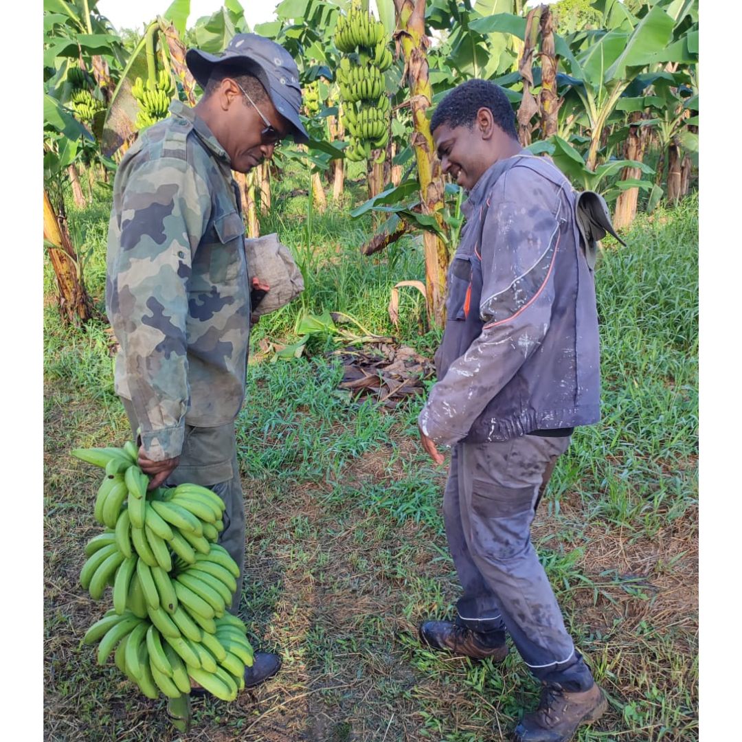 Au cours de la matinée, les participants ont pu découvrir au cœur de l’exploitation agricole de M. LATCHMAN, les opérations nécessaires à la récolte de la banane avant de pouvoir s’approvisionner en fruits et légumes frais.