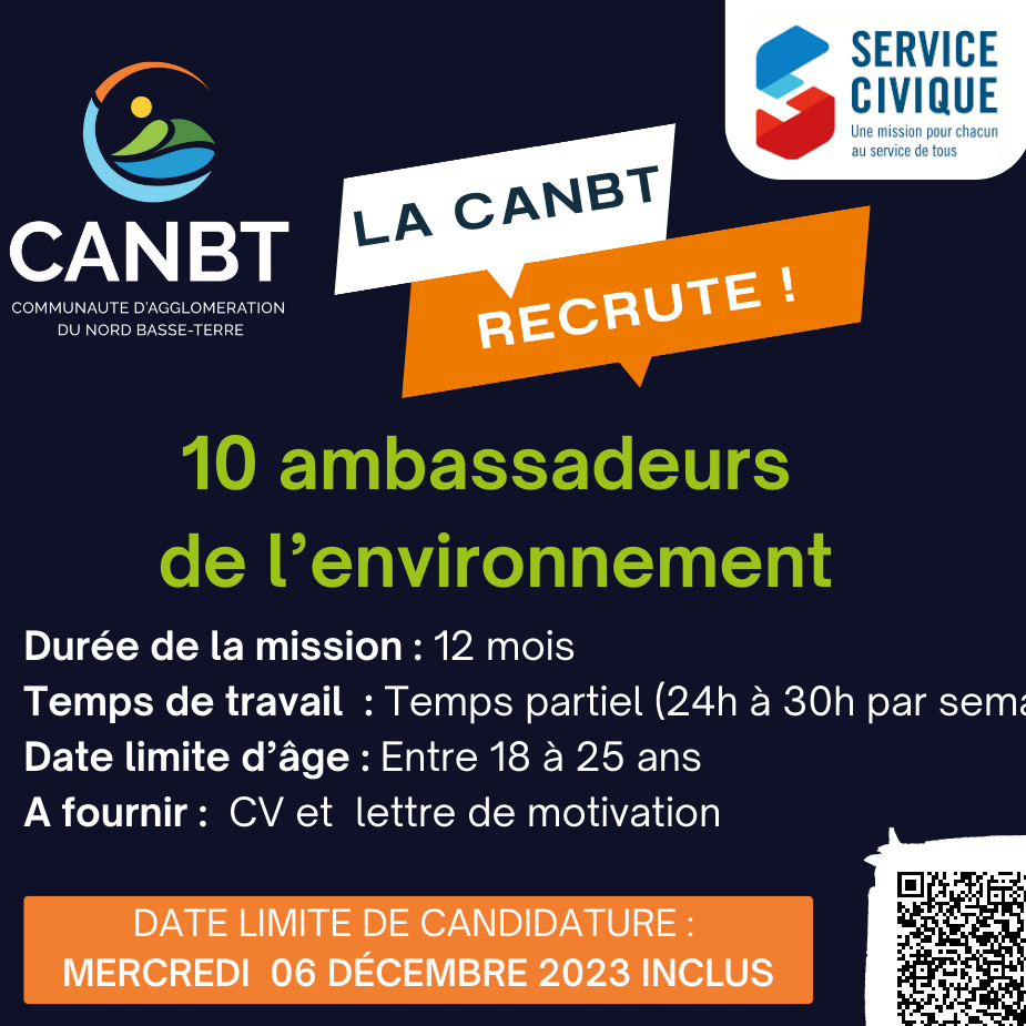 📌 La Communauté d'Agglomération du Nord Basse-Terre recrute 10 jeunes en service civique, sans condition de diplôme ou d’expérience.