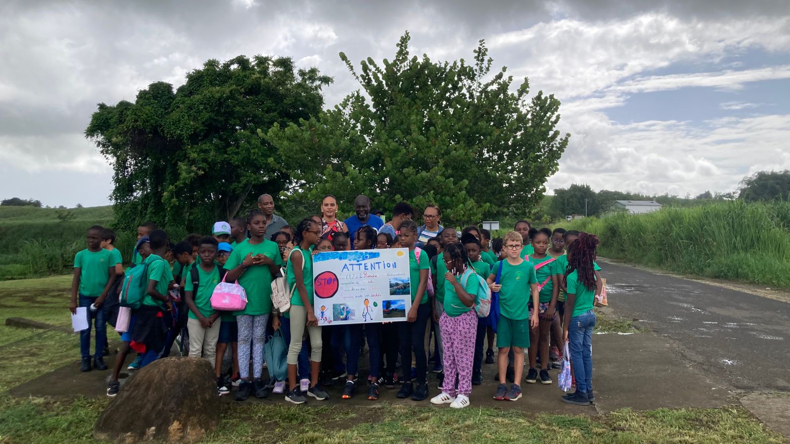 Le jeudi 15 mai 2025, une pancarte de sensibilisation à la protection de l’environnement a été installée sur le site de Gédon, à Lamentin, à l’initiative des élèves de CE2 de l’école élémentaire Lucien GAYADINE (section La Rosière), dans le cadre de leur projet d’aire éducative.